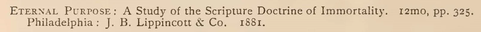 Review of Eternal Purpose: A Study of the Scripture Doctrine of Immortality (1881)