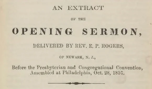 An Extract of the Opening Sermon, Delivered by Rev. E.P. Rogers, of Newark, N.J., Before the Presbyterian and Congregational Convention, Assembled at Philadelphia, Oct. 28, 1857 (1858)