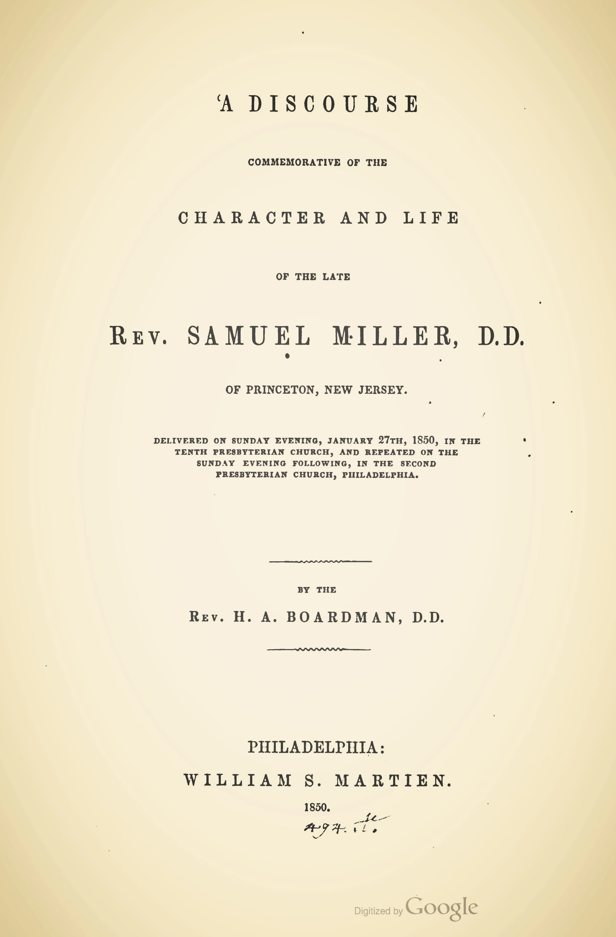 Address of Dr. Boardman at the Funeral of Rev. John McDowell (1863)