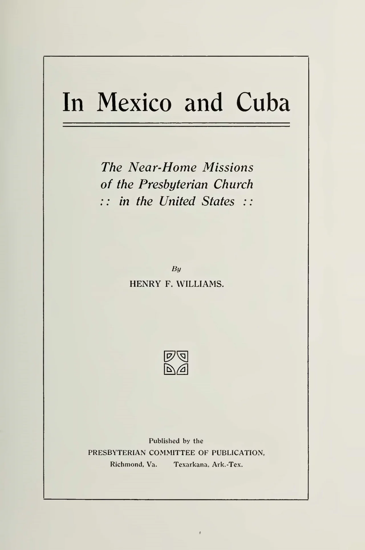 In Mexico and Cuba: The Near-Home Missions of the Presbyterian Church in the United States (1912)