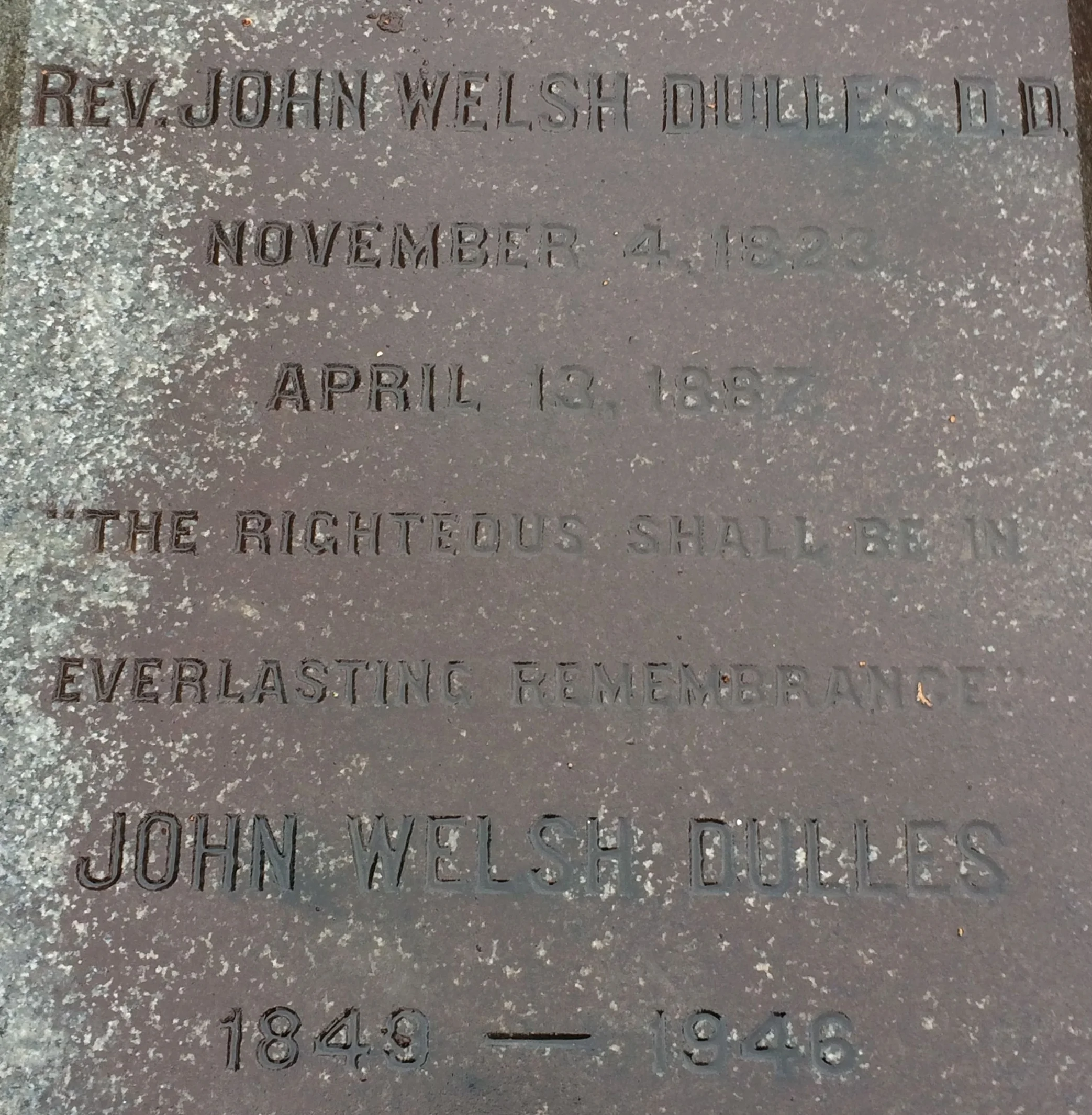 John Welsh Dulles is buried at Laurel Hill Cemetery, Philadelphia, Pennsylvania.