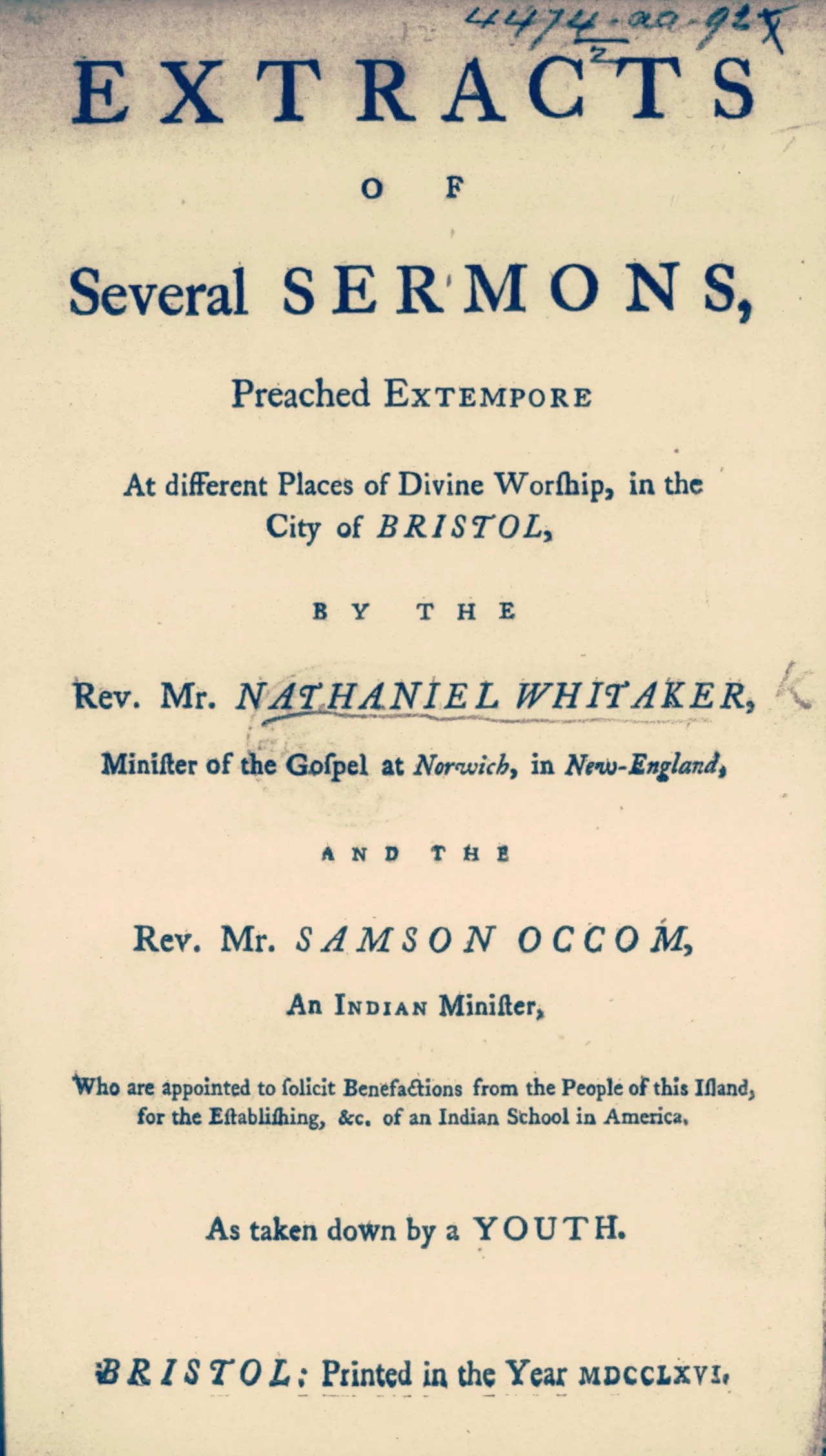 An Indian Preacher in England; Being Letters and Diaries Relating to the Mission of the Reverend Samson Occom and the Reverend Nathaniel Whitaker to Collect Funds in England For the Benefit of Eleazar Wheelock's Indian Charity School, From Which Grew Dartmouth College (1933)