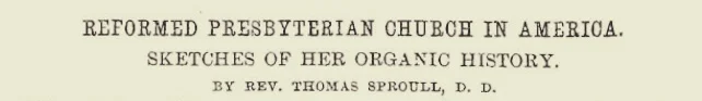 Reformed Presbyterian Church in America: Sketches of Her Organic History (1876-1877)